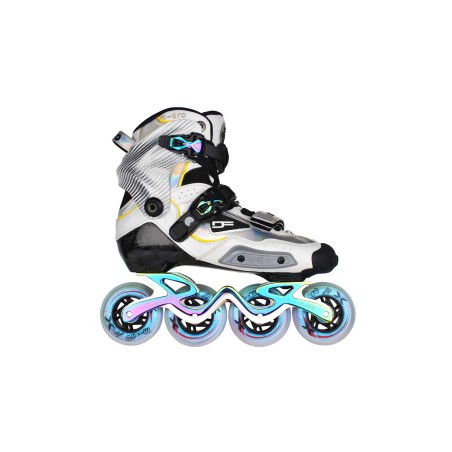 Il Delta F è stato creato con tecnologia avanzata per soddisfare standard militari. Questo pattino presenta uno scafo e un cuff in fibra di carbonio che offrono la quantità perfetta di supporto, ma allo stesso tempo il giusto comfort per quelle lunghe sessioni di allenamento grazie alle sue capacità di termoformatura al 100%. La tomaia in microfibra permette al pattino di avvolgere perfettamente il tuo piede e dargli una bella aderenza. Telaio in alluminio CNC di alta qualità da 243 mm con 4 ruote in poliuretano ad alto rimbalzo a profilo tondo da 85A e cuscinetti Slalom Pro9 che offrono un rotolamento super fluido. Un bellissimo design elegante che attirerà sicuramente l'attenzione di tutti.